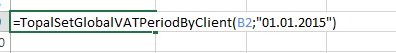 =TopalSetGlobalVATPeriod("01.01.2015") or =TopalSetGlobalVATPeriod("VatPeriod")