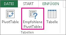 Klicken Sie auf Einfügen > Empfohlene PivotTables.