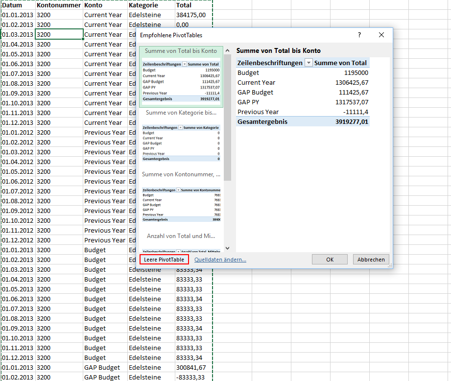 Abbildung 2: Empfohlene PivotTables