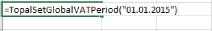 =TopalSetGlobalVATPeriod("01.01.2015") or =TopalSetGlobalVATPeriod("VatPeriod")