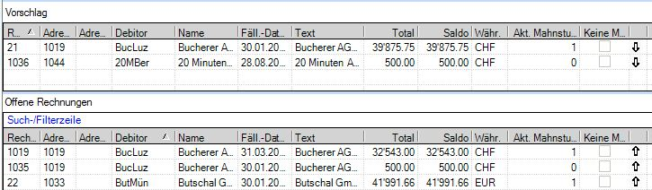 ![]() Abbildung 2: Vorschlag/Offene Rechnung