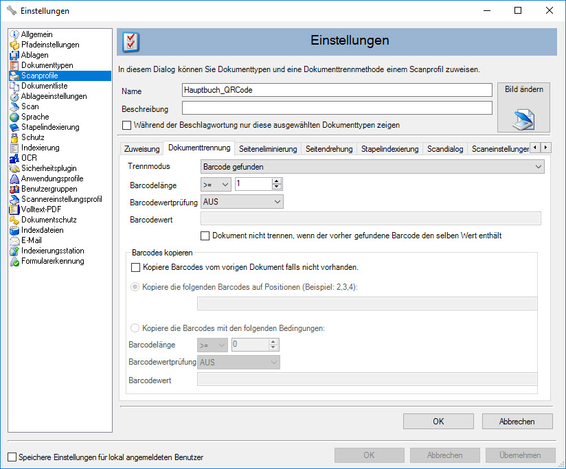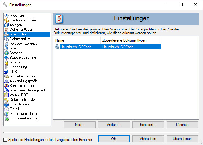 Erstellen Sie nun ein Scanprofil durch drücken des [Neu] buttons. Aktivieren Sie das Scanprofil durch anwählen des Profils im Tab [Zuweisung].