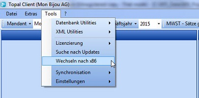 Um auf die 64-Bit Version zu wechseln steht Ihnen im Menü [Tools] ein neuer Menüpunkt [Wechseln nach x64] zur Verfügung.
