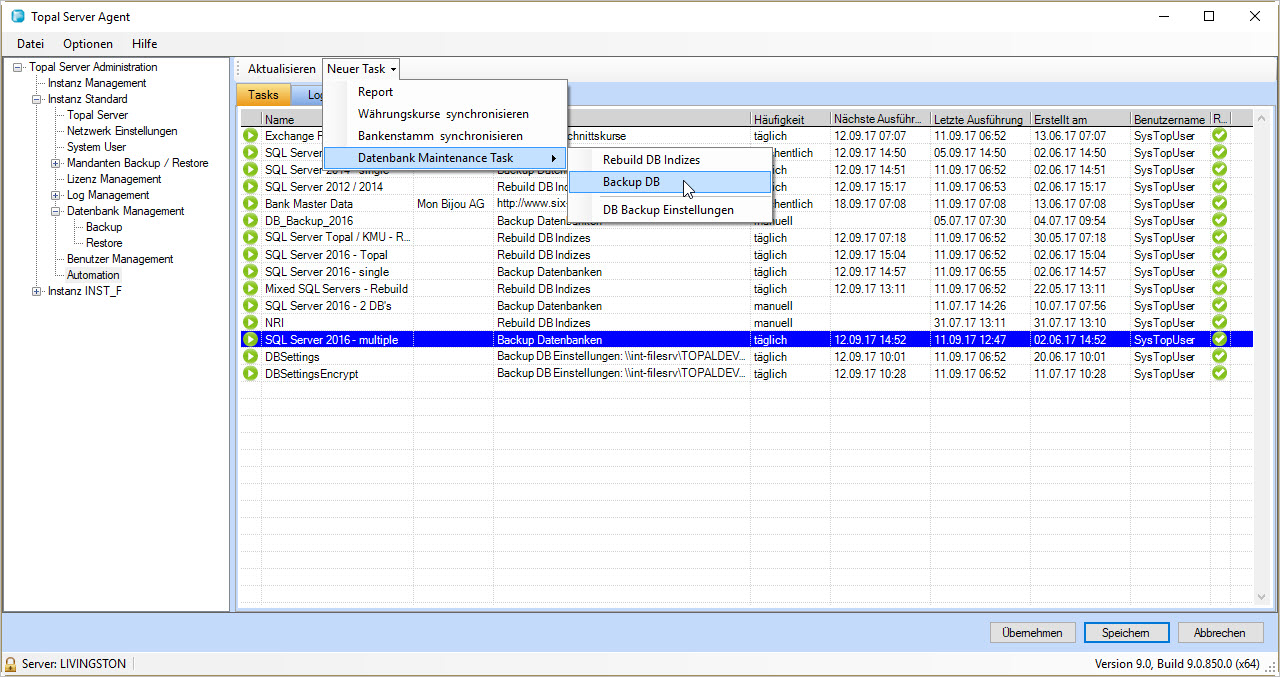 Die Verwendung der DB-Indexierung wird im Topal Server Agent vorgenommen. Öffnen Sie zur Erstellung eines DM Indexierungstasks im Server Agent den