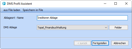 3) DMS Feld Mapping zwischen Topal und DMS System - Fügen Sie die Bezeichnung der Ablage und wählen Sie die DMS Ablage Ihres Systems ein.