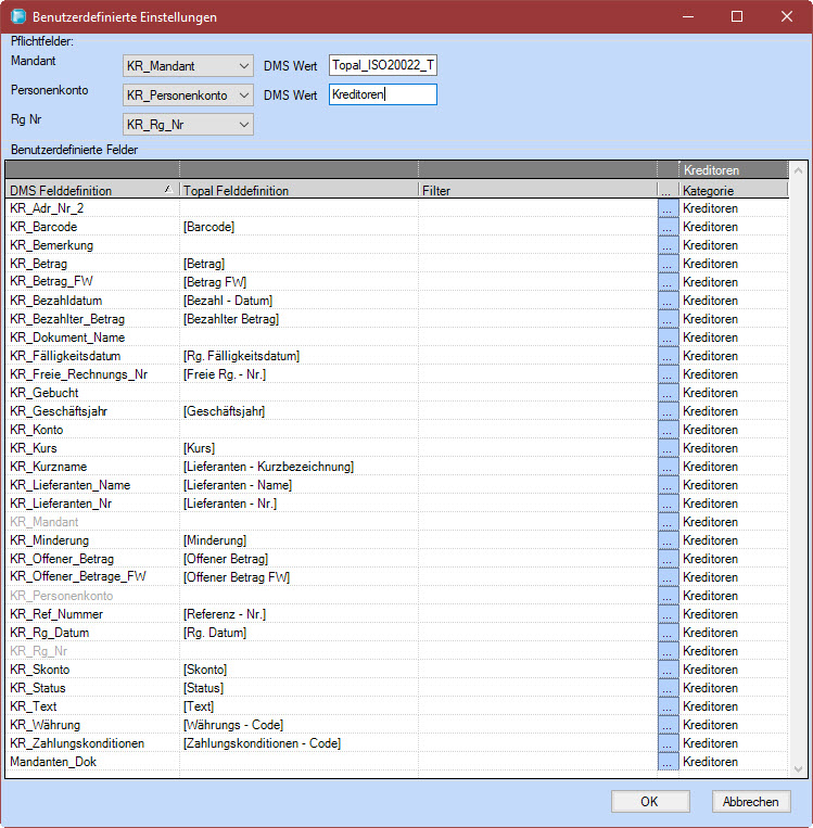 Abbildung 1: Dokument Management - Feld Mapping Kreditoren