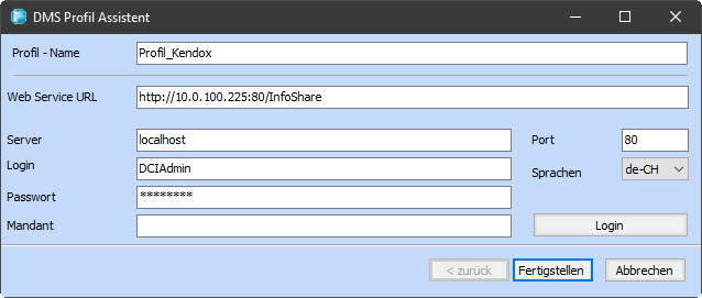 Verbindungsparameter Einstellungen für MFiles DMS Anbindung.