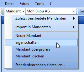 Menu [Mandant | Eigenschaften].