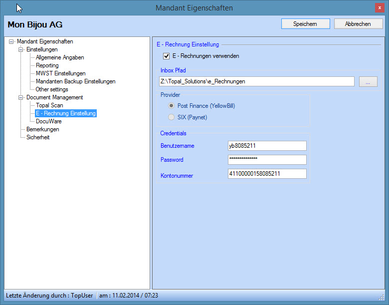 Transaktionen aus E-Rechnungen für diesen Mandanten erstellen, Zugriffsberechtigung auf diesen Ordner haben. Speichern Sie anschliessend diese Einstellungen.