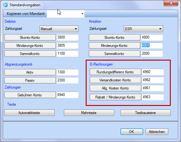 Bei E-Rechnungen existieren verschiedene Fälle (z.B. Versandkosten, Minderungen/Rabatte oder MWST Rundungsdifferenzen etc.) auf entsprechende Konten zu verbuchen.