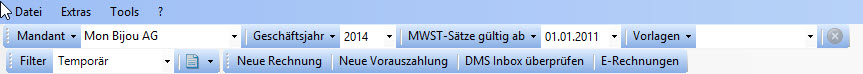 Aktualisieren - Via [Aktualisieren] Knopf werden die E-Rechnungen neu vom PostFinance Server angefordert.