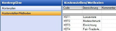 Abbildung 9: Kontenpläne - Kostenstelle/Methoden