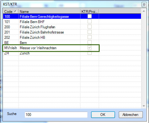 In diesem Bereich können Sie beliebig viele Kostenträger resp. Projekte anlegen. Diese stehen anschliessend auch in der Buchungsmaske – analog der