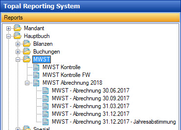 Die MWST Reports beinhalten die wichtigsten Auswertungen der Mehrwertsteuer: