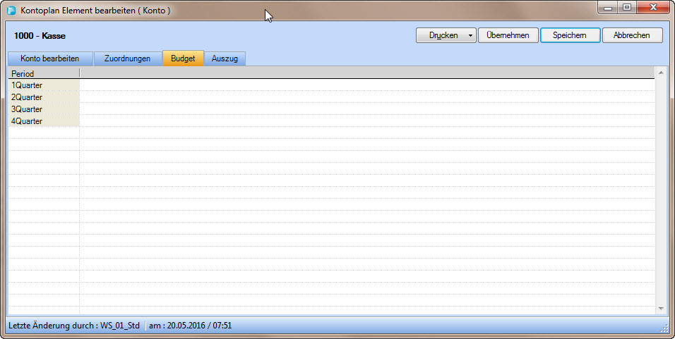 automatisch berechnet werden können. Die dort im Vorgabebudget erfassten Werte für das aktuelle Konto werden in diesem Register angezeigt.
