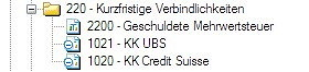 Spiegelkonten sind typischerweise Geldkonten, die im Fall eines negativen Saldos in einer Kontengruppe auf der Passivseite der Bilanz erscheinen sollen. Ein solches Konto erfassen Sie zunächst wie gewohnt an der Position im Kontenplan, wo es den Positivsaldo ausweist. Im nächsten Schritt erstellen Sie in der Gruppe, in der das Konto im Fall eines Negativsaldos erscheinen soll, ein Spiegelkonto unter der gleichen Kontonummer.