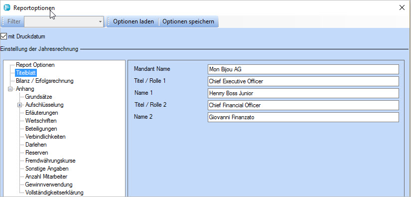 Die Jahres und Datums Angaben, werden direkt aus dem entsprechenden Geschäftsjahr bezogen.