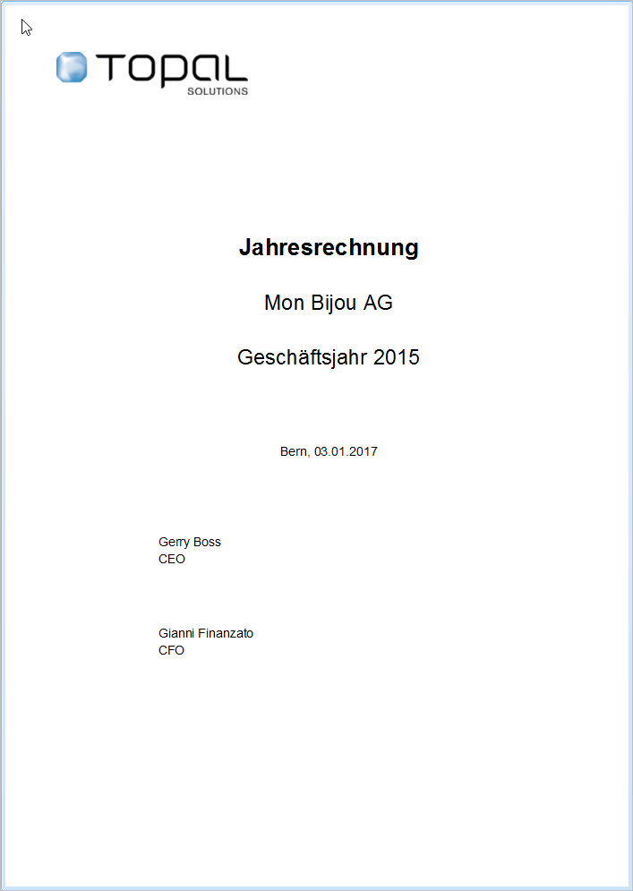 In Abbildung 2 ist ein entsprechendes Titelblatt abgebildet. Das einfügen des Firmenlogos lässt sich durch eine Anpassung des