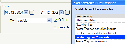 3. Geben Sie im Register „Allgemein“ eine Datumsbeschränkung ein, z.B. indem Sie auf den quadratischen Button hinter dem Datumsfeld klicken und als „Datums-Joker“ die