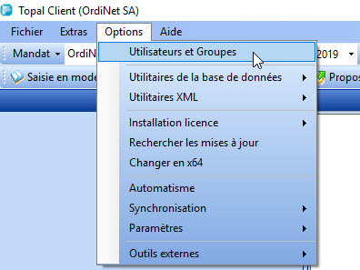 Dans Topal Client , accédez aux paramètres de sécurité via [Options >  Utilisateurs et Groupes] (Figure 1).