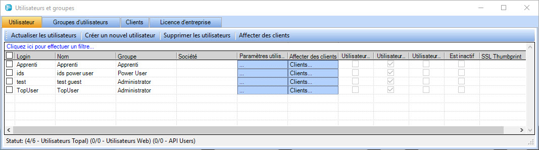 Figure 2 : Topal Client - Gestion des utilisateurs
