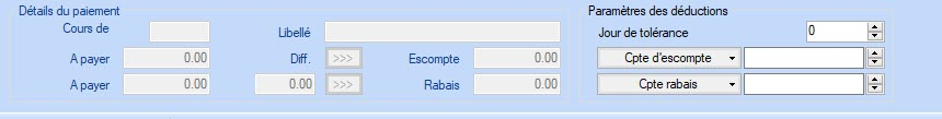 Si le paiement est effectué dans le délai d’escompte accordé au client, le programme insère automatiquement le montant de l'escompte dans ce champ. Vous pouvez modifier ou supprimer ce montant, si le client a oublié de déduire l'escompte ou a commis une erreur dans le calcul.