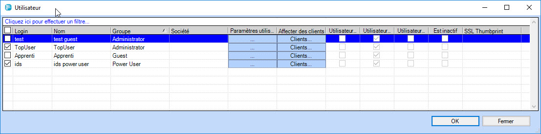 Le dialogue Utilisateur s'ouvre (Figure 2), pour sélectionner les utilisateurs de votre choix.