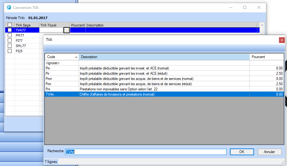 Topal dispose d'un fichier de conversion TVA qui contient des spécifications standard pour la conversion des codes TVA.