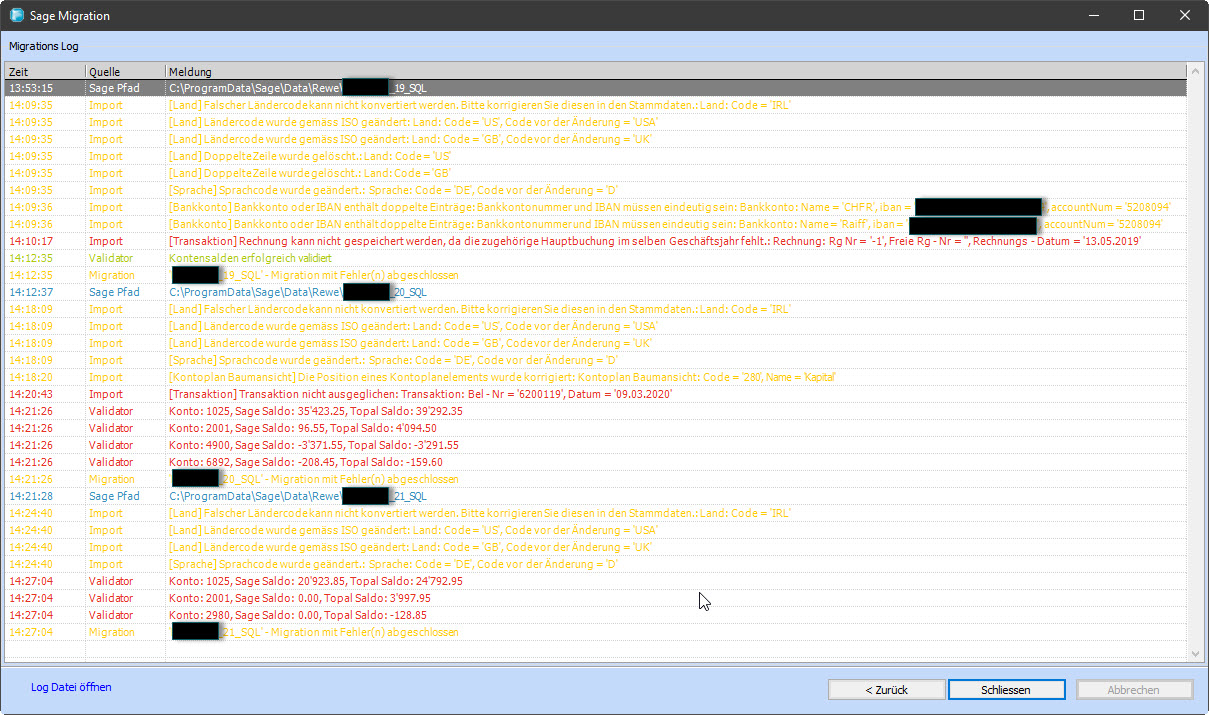 Un journal de migration est créé pour chaque migration. Il peut être consulté directement dans le dialogue de migration (voir Figure 4). Le journal est également stocké sous le chemin suivant : : <Chemin_spécifique_utilisateur>\AppData\Roaming\Topal Solutions AG\TOPAL\Log\SageMigration