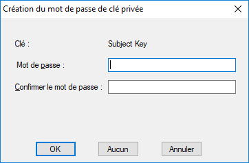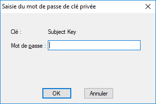Figure 2 : Emission d'un certificat racine auto-signé - Entrez le mot de passe de la clé privée