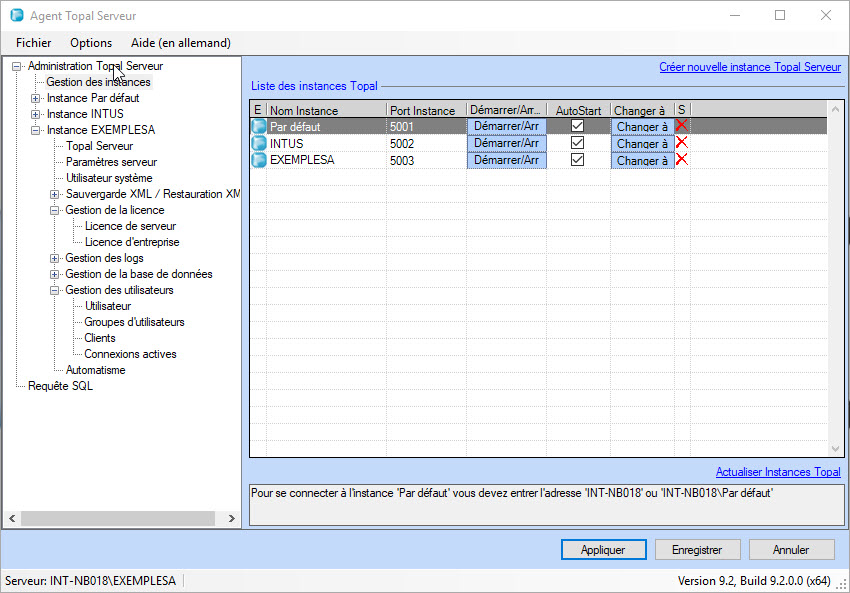 Dans Topal, il est possible de configurer plusieurs instances de serveur (schémas de base de données). Chacune de ces instances (Figure 3) doit être administrée séparément. Par conséquent, vous pouvez créer un certificat de serveur distinct pour chacune de vos instances et l'associer à l'instance.