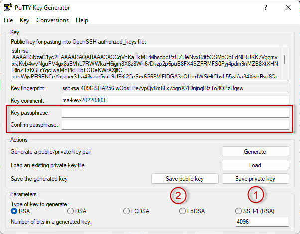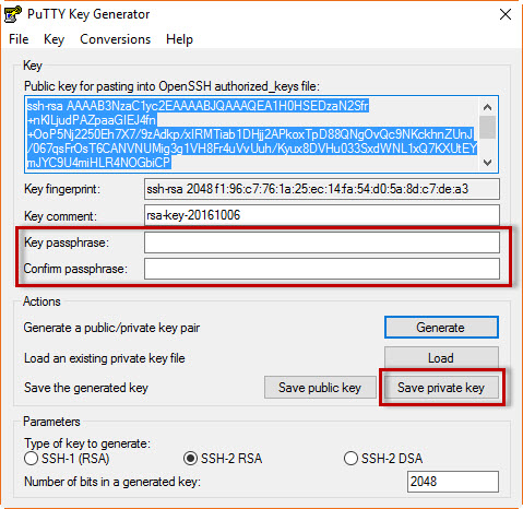 Figure 2 : PuttyGen Private Key File Parameters - Création