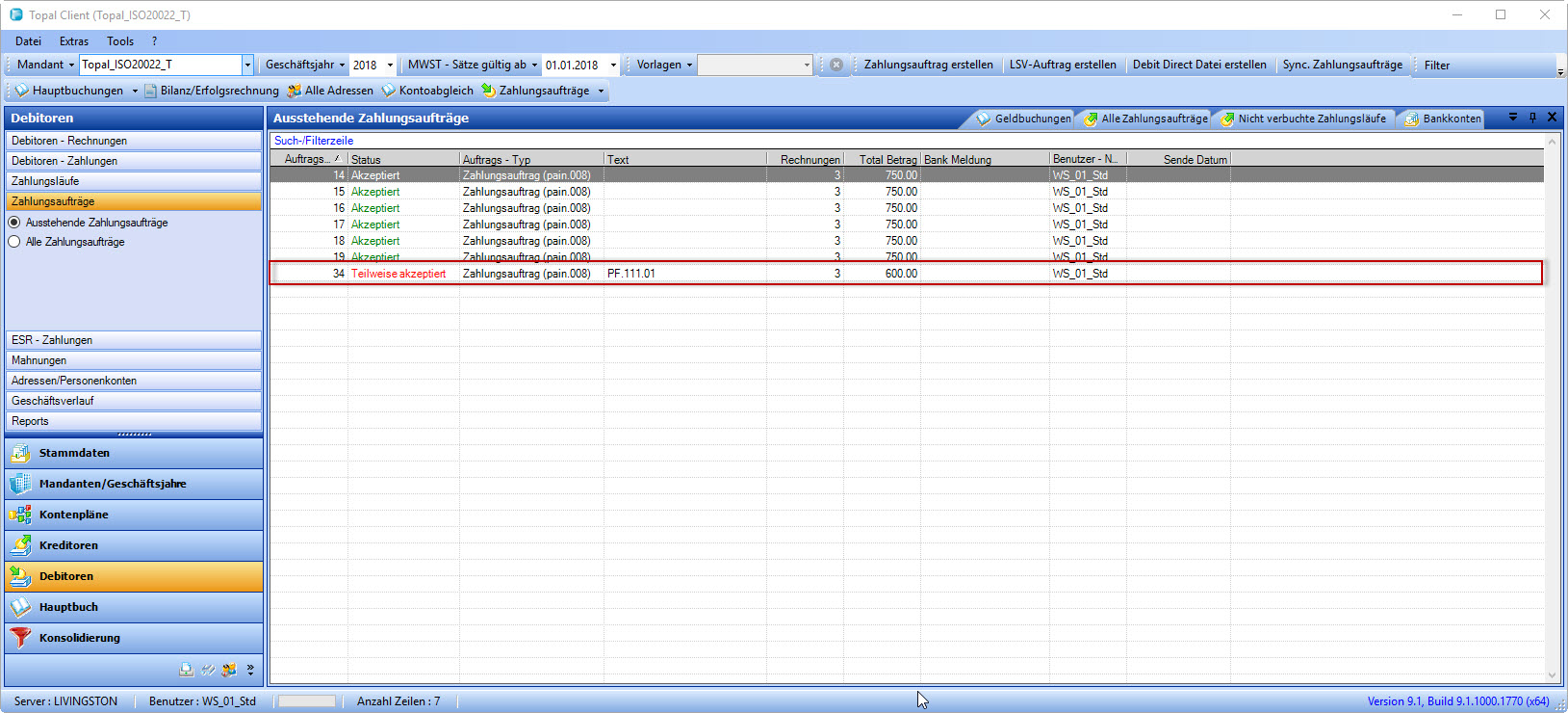 Sélectionnez la proposition de paiement avec le statut Partiellement accepté et ouvrez-la via le menu contextuel (Figure 5). Après l'ouverture de la proposition de paiement,