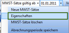 Das Eigenschaftsfenster wird im MWST-Menü in der Kopfleiste aufgerufen.