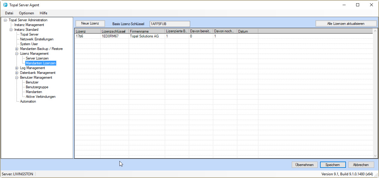 Weise zusammenarbeiten, legen Sie im Register "Mandantenlizenzen" (Abbildung 1) einen neuen Eintrag an.