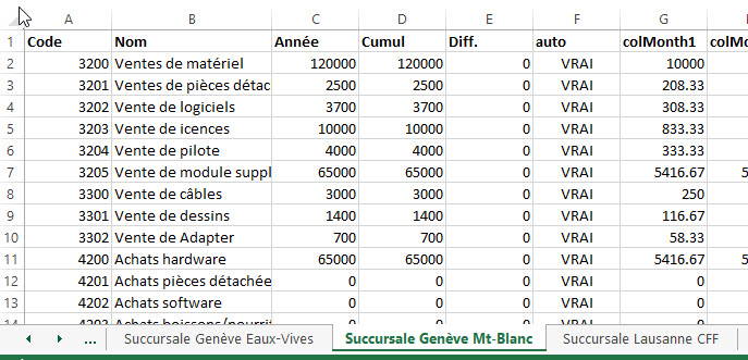 Si vous avez sélectionné l’élément d'un budget CDA (sous-élément) et que vous l'exportiez, un seul onglet sera visible dans Excel.