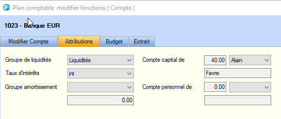 Figure 1 : Plan comptable – Onglet Attributions