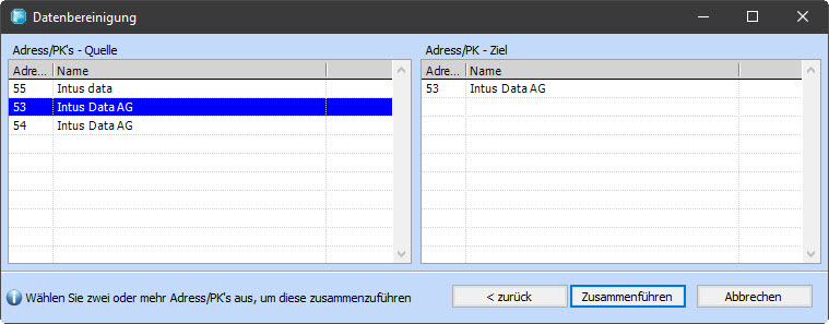 Bei der Datenbereinigung werden nicht nur die Adressen zusammengeführt, sprich Text Informationen, sondern auch die mit einem Adress/PK verwendeten