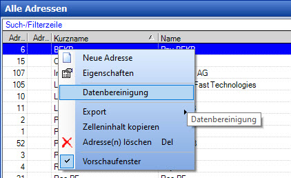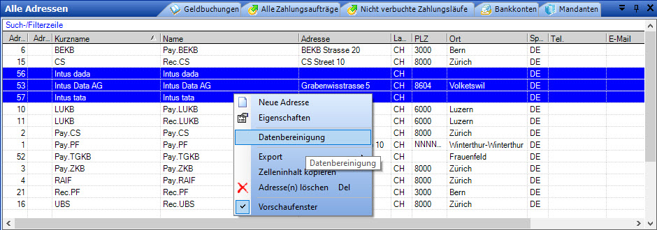 Die Verwendung der [Export] Funktion, können Sie Adressen in verschiedene Formate wie XML, Excel, CSV oder in einen anderen Mandanten exportieren.