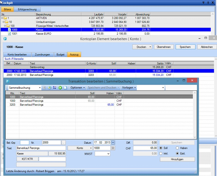 Doppelklick oder via Kontextmenü aufruf der Buchung erreicht. Weitere Informationen zu diesem Thema finden Sie unter Transaktion bearbeiten.