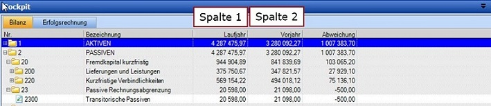 Abbildung 6: Spalte 1 "Laufjahr" und Spalte 2 "Vorjahr"