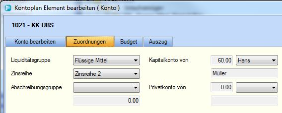 In diesen Listenfeldern erscheinen die Personen, die Sie in den Stammdaten als Partner erfasst haben. Auf diese Weise lassen sich Kapital- oder Privatkonten mit den zugehörigen Personen verknüpfen. Die Angaben dienen als Grundlage für eine Vermögensrechnung für Personengesellschaften bzw. eine Aufstellung über die Kapitalverhältnisse bei Kapitalgesellschaften.
