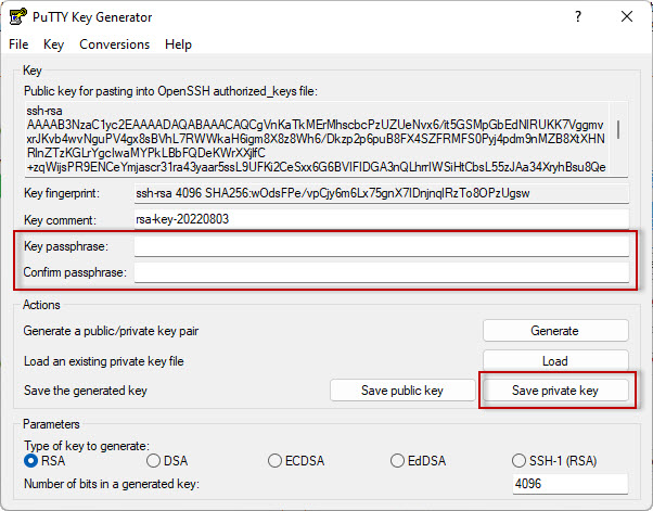 Speichern Sie danach das Keys via [Save private Key] unter dem entsprechenden Namen. Es spielt keine Rolle, in welcher Reihenfolge Sie die Keys erstellen. Es ist lediglich