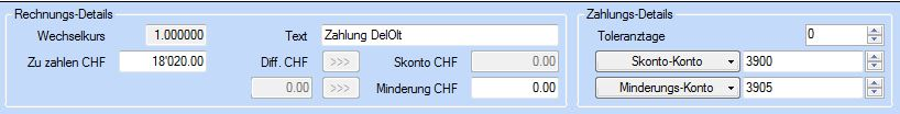 Die Zahlung einer Rechnung ist von ihrer Struktur her meist die schlichte Buchung Geldkonto an Debitor, so dass für die Debitorenzahlung viele Felder der anderen Eingabemodi, wie Steuerschlüssel oder Kostenstelle etc., überflüssig sind. Beim Verbuchen von Zahlungen braucht man vielmehr Unterstützung bei der Behandlung von Skontobeträgen, bei Teilzahlungen sowie der Zahlung von mehreren Rechnungen in einem Betrag. Dazu bietet Topal im unteren Bereich des Fensters verschiedene Funktionen an.