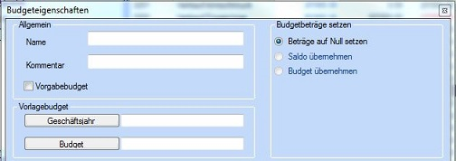 Abbildung 3: Neues Budget - Budgeteigenschaften