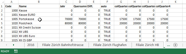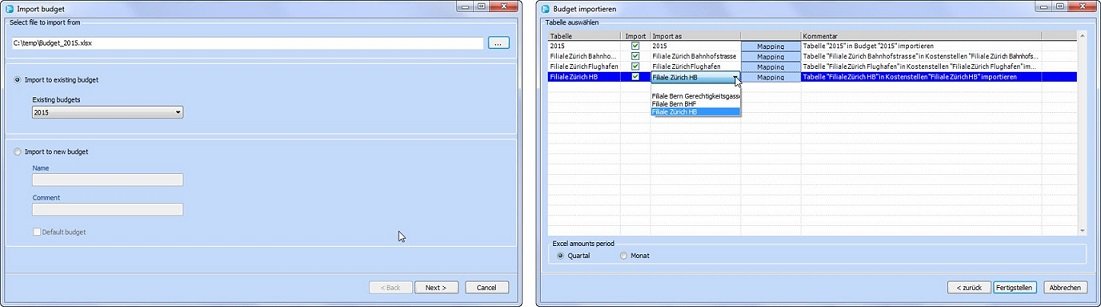 Import in bestehendes Budget (mehrere Kostenstellen Tabellen)