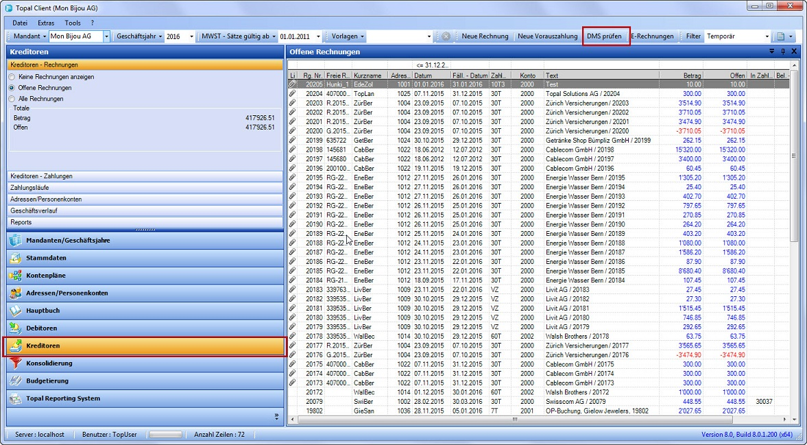 in der Kopfzeile ein neuer Menüpunkt [DMS Prüfen] zur Verfügung (siehe Abbildung 3 unten).