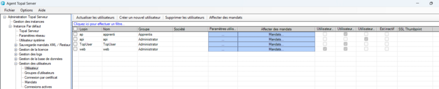 Figure 3 : Topal Server Agent - Gestion des utilisateurs