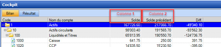Figure 6 : Colonne 1 : Solde et Colonne 2 : Solde précédent