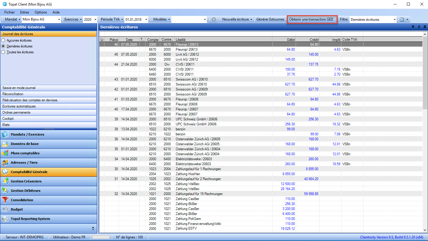 Figure 1 : Journal des écritures - Obtenir une transaction GED